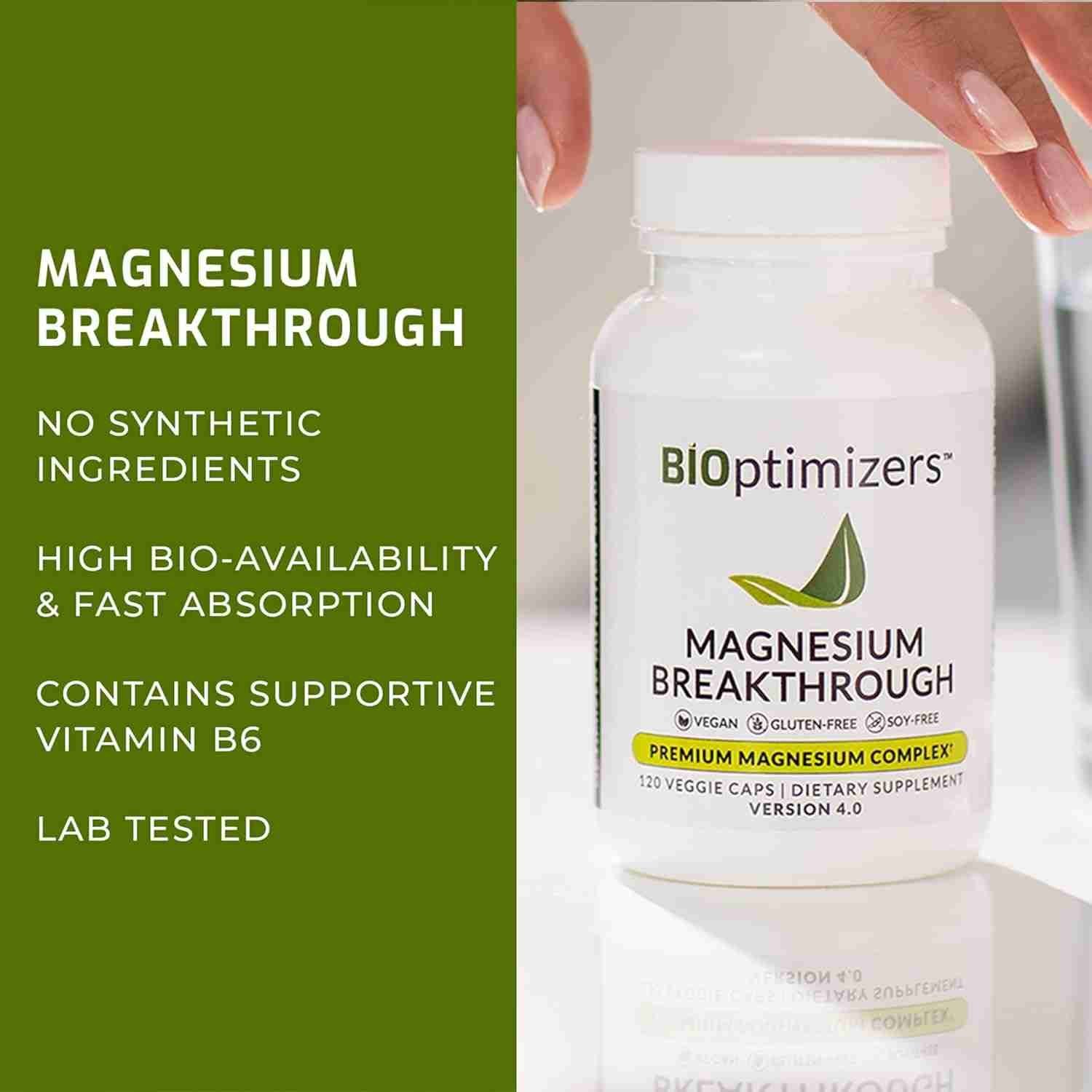 BiOptimizers Magnesium Breakthrough Supplement 4.0 – Has 7 Forms of Magnesium: Glycinate, Malate, Citrate, and More – Natural