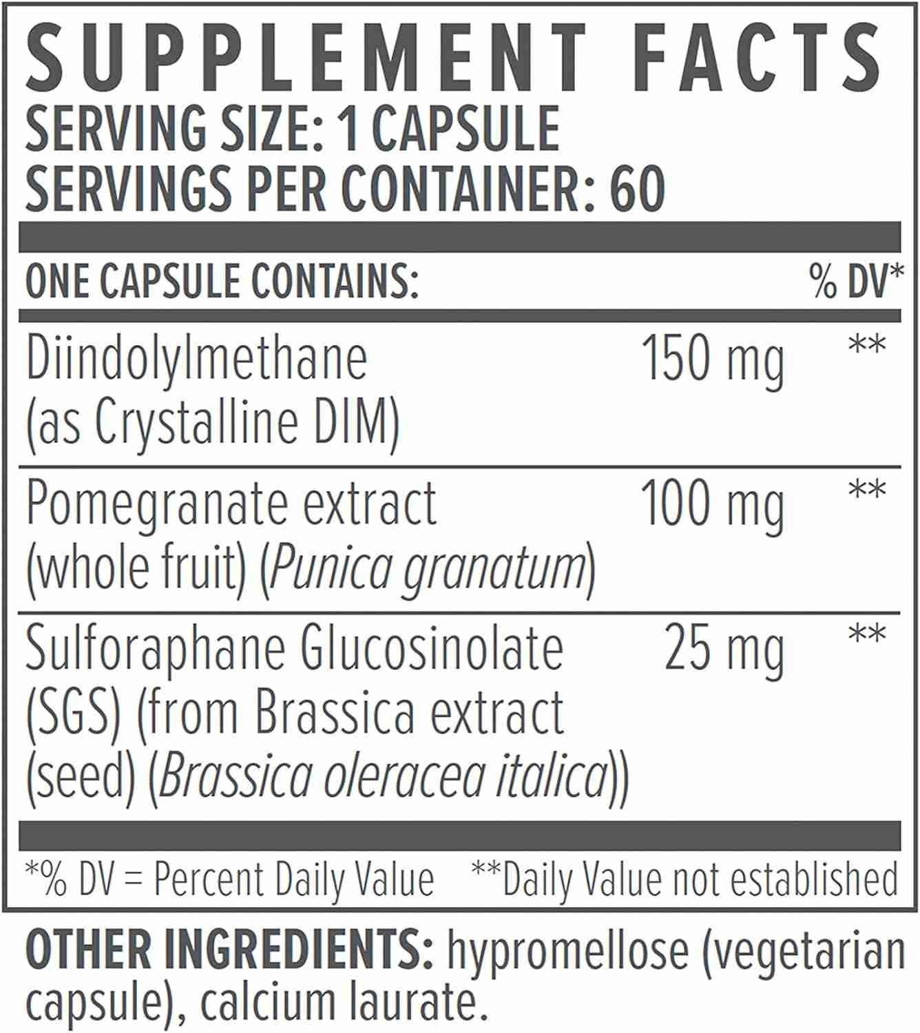 Diindolylmethane (as Crystalline DIM), Pomegranate extract, Sulforaphane Glucosinolate (SGS)