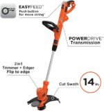 Get the job done with this lightweight, compact 14 in. electric string trimmer/edger. It converts easily from a string trimmer to an edger, while the EASYFEED system ensures you won’t have to bump the trimmer to feed the line. A 6.5 Amp motor and POWERDRIVE transmission let you easily cut through overgrowth, trim edges, create lawn borders, and more.