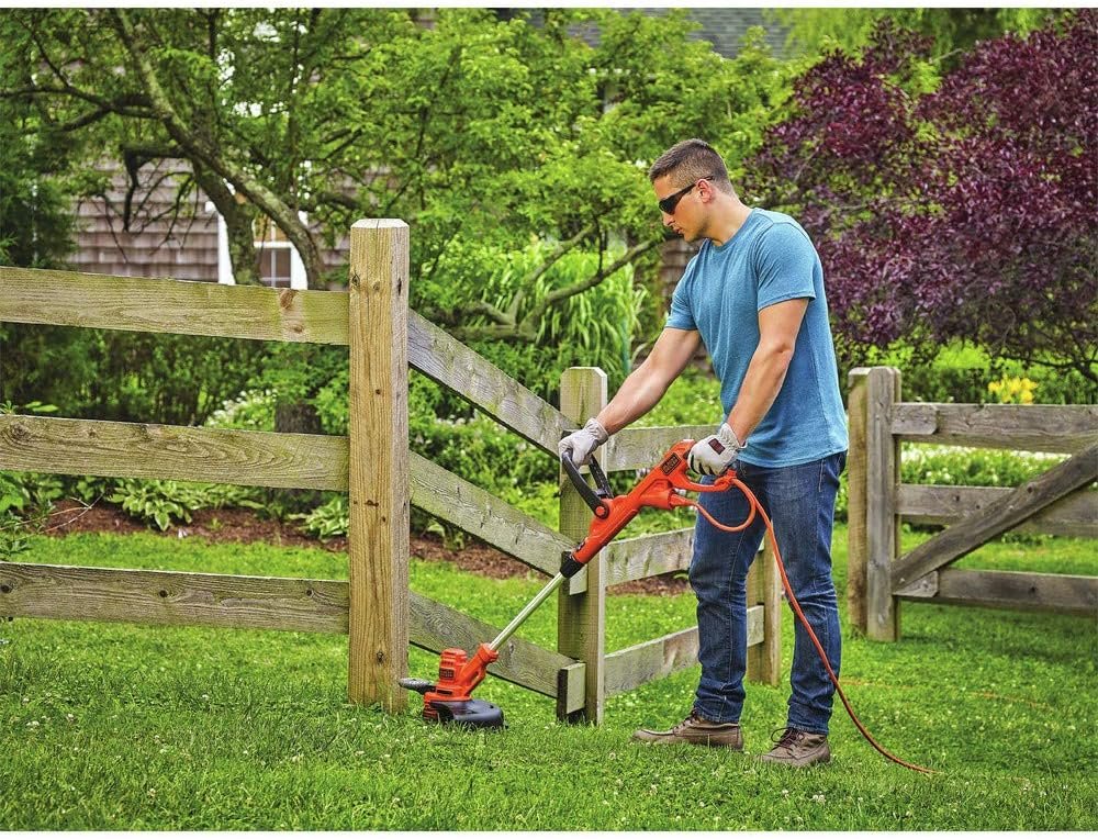 Clean up and beautify your outdoor haven with easy-to-use BLACK+DECKER tools, like the 14 in. electric string trimmer/edger. The versatile design lets you use it as a string trimmer or a wheeled edger. And unlike other string trimmers, this one doesn’t require any bumping to feed the trimmer line thanks to its EASYFEED system. The powerful 6.5 Amp motor and POWERDRIVE transmission deliver plenty of cutting strength, even on tough weeds and overgrowth. Plus, this lawn trimmer/edger combo is designed with your comfort in mind. The handle and height adjust, so you can work in an upright position, while the soft grip keeps you comfortable and in control throughout your task. A built-in cord retainer means no accidental unplugging.