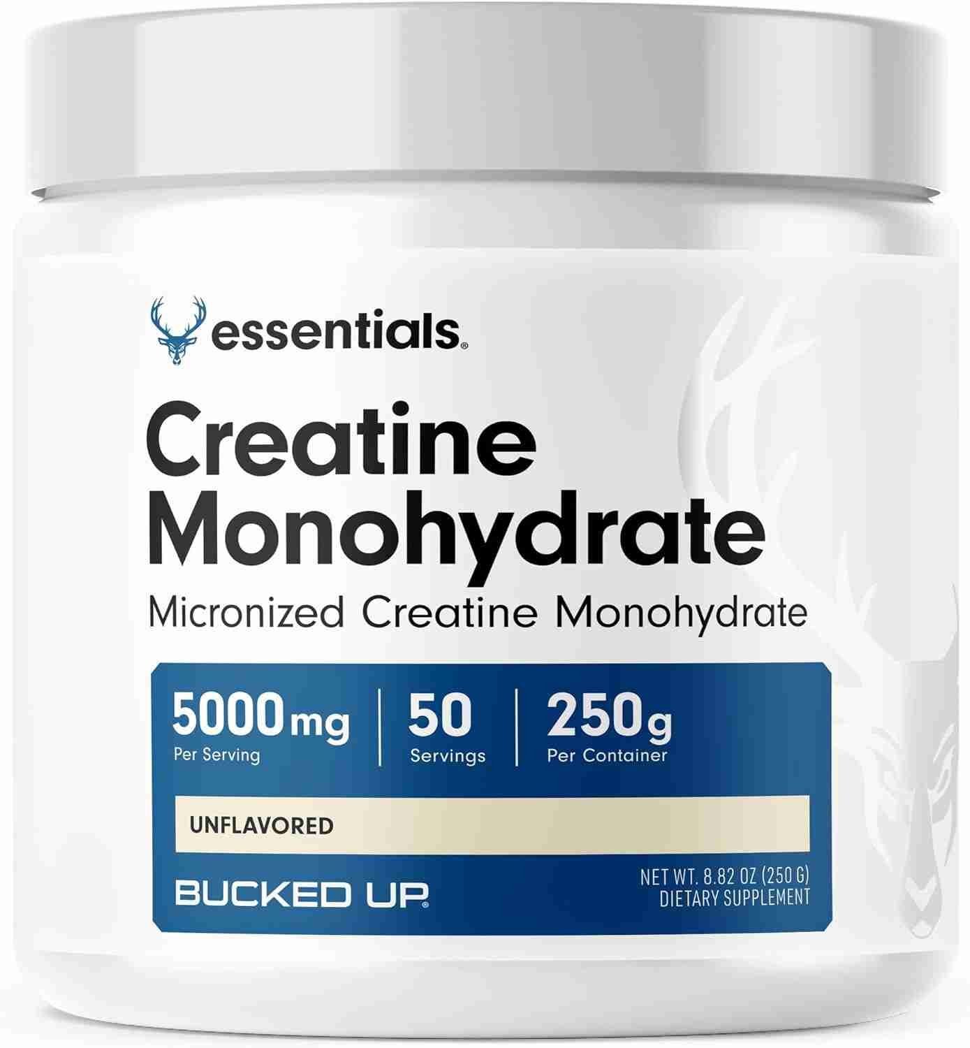Bucked Up Creatine Monohydrate 250 Grams Micronized Powder, Essentials (50 Servings)