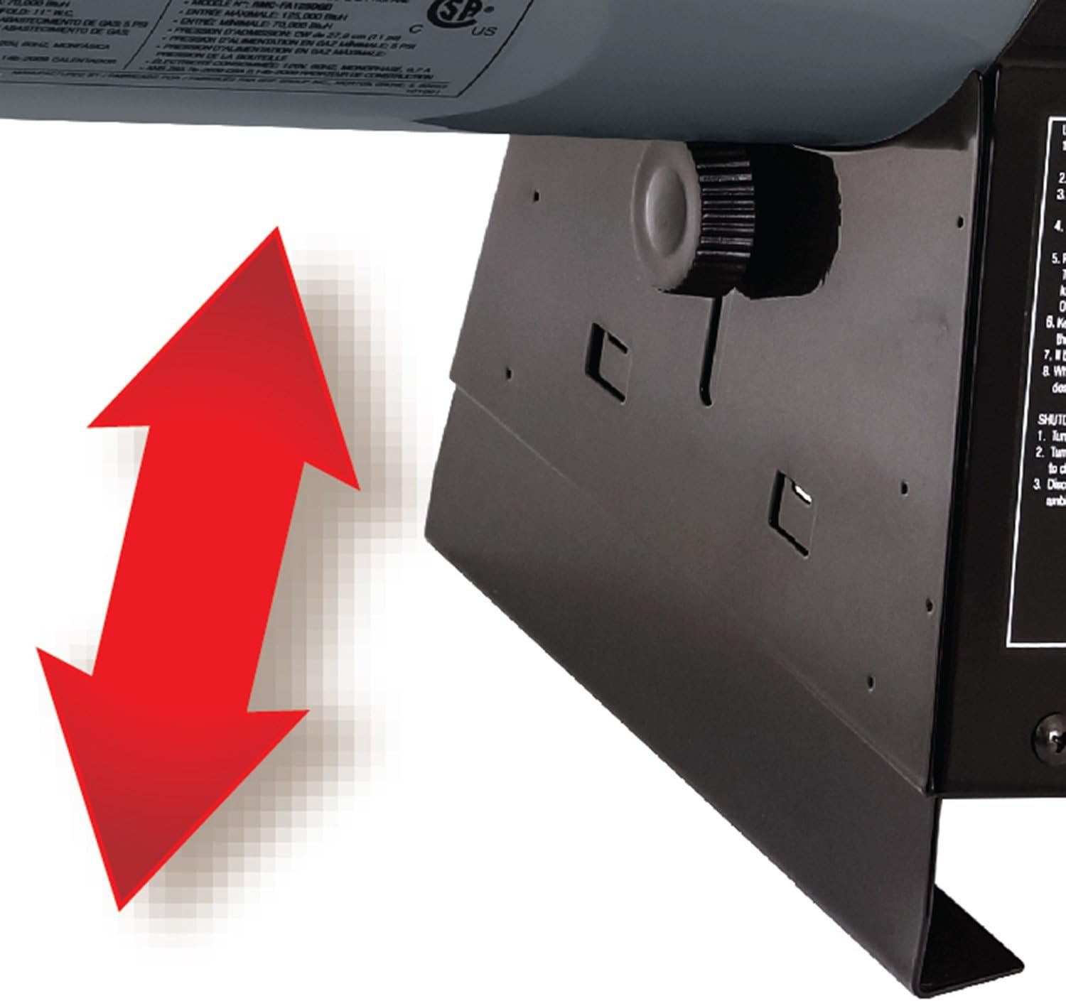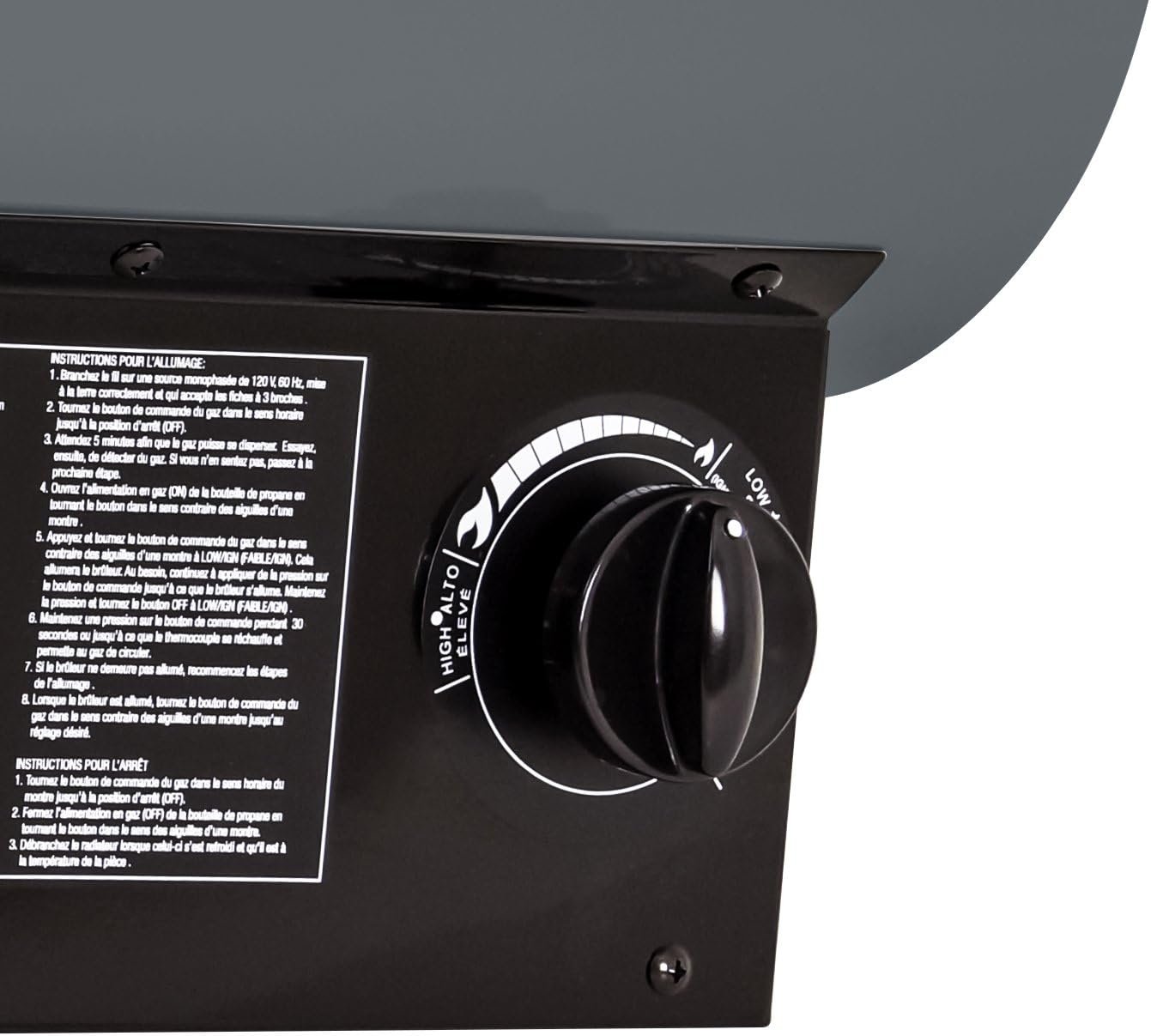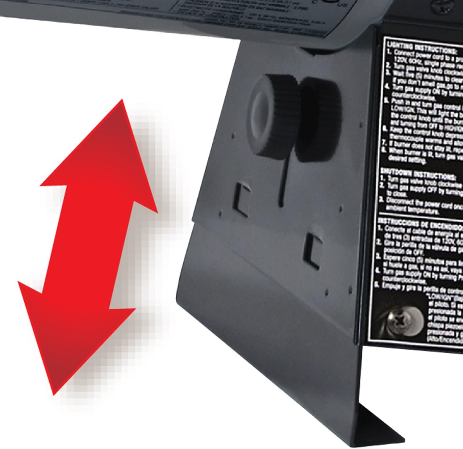 Steel encloses the base to protect vital components, and a control knob adjusts the heating angle.