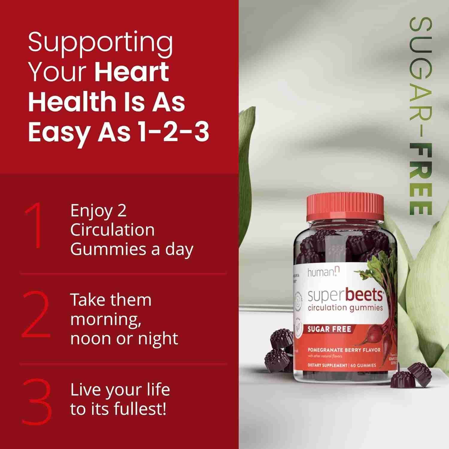 humanN SuperBeets Circulation Gummies – Heart-Healthy Energy, Grape Seed Extract & Beet Root Powder – Pomegranate Berry Flavor,