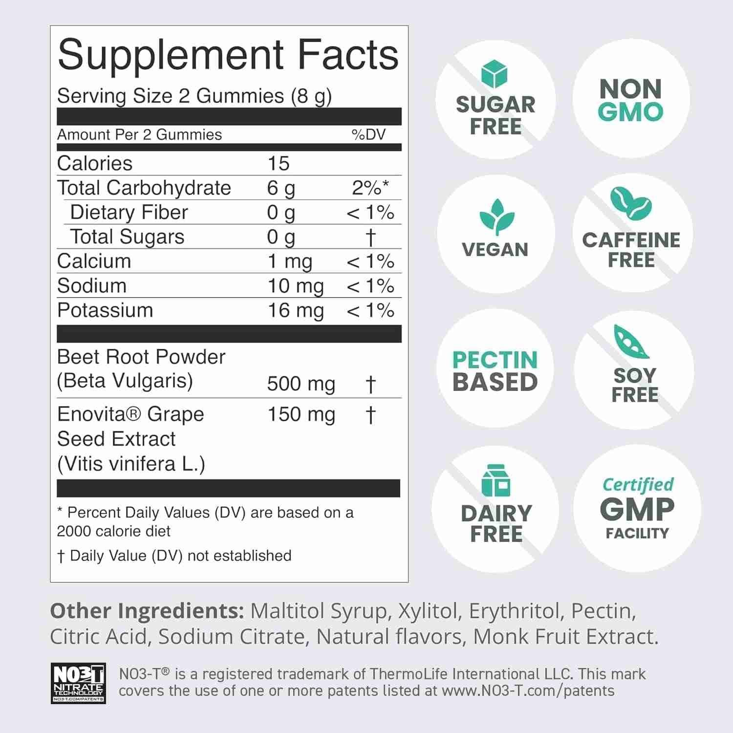 Pomegranate Berry Flavor Ingredients: Non-GMO Beetroot Powder, Enovite Grape Seed Extract, Maltitol Syrup, Xylitol, Erythritol, Pectin, Citric Acid, Sodium Citrate, Natural flavors, Monk Fruit Extract.