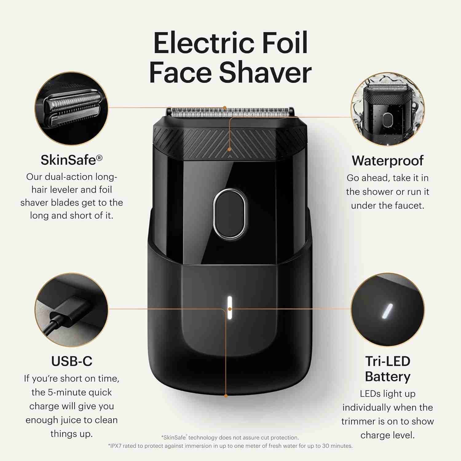 MANSCAPED® The Handyman™ Compact Face Shaver – Portable Men’s Travel Facial Hair Groomer, USB-C Rechargeable Razor,