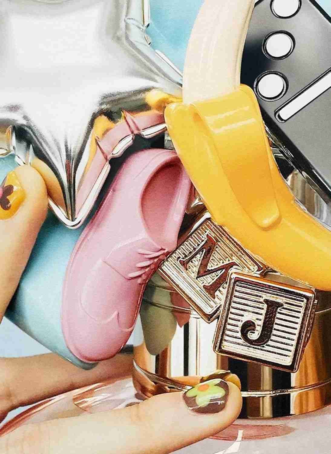 The Perfect Marc Jacobs bottle is a fun mix of elegance and modernity. The weighted glass base is inspired by the grace and style of a classic perfume. At the top, the cap is crowned with an eclectic and multicolored collection of mis-matched charms. Each charm was selected by Marc himself, and injects a touch of his style into the design.