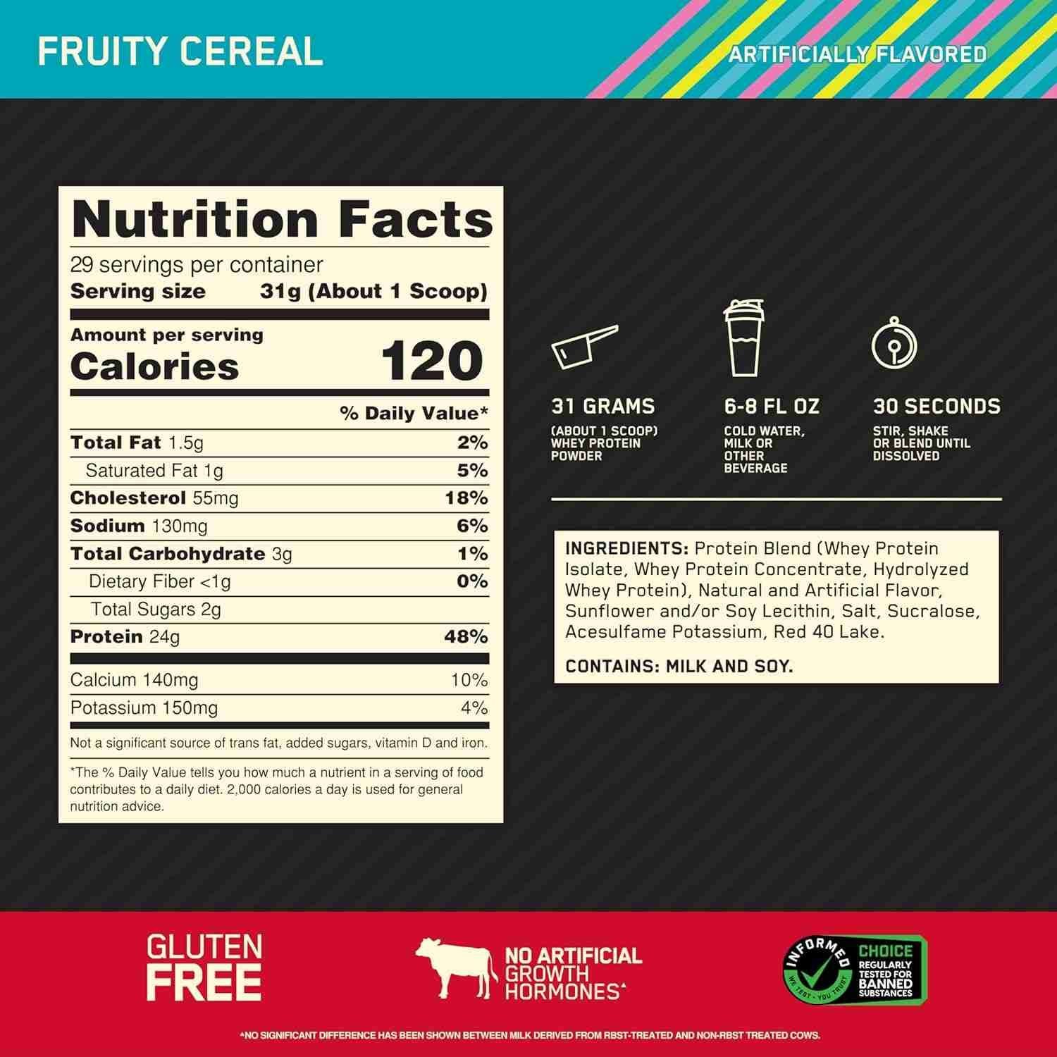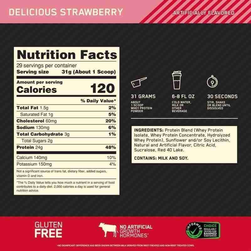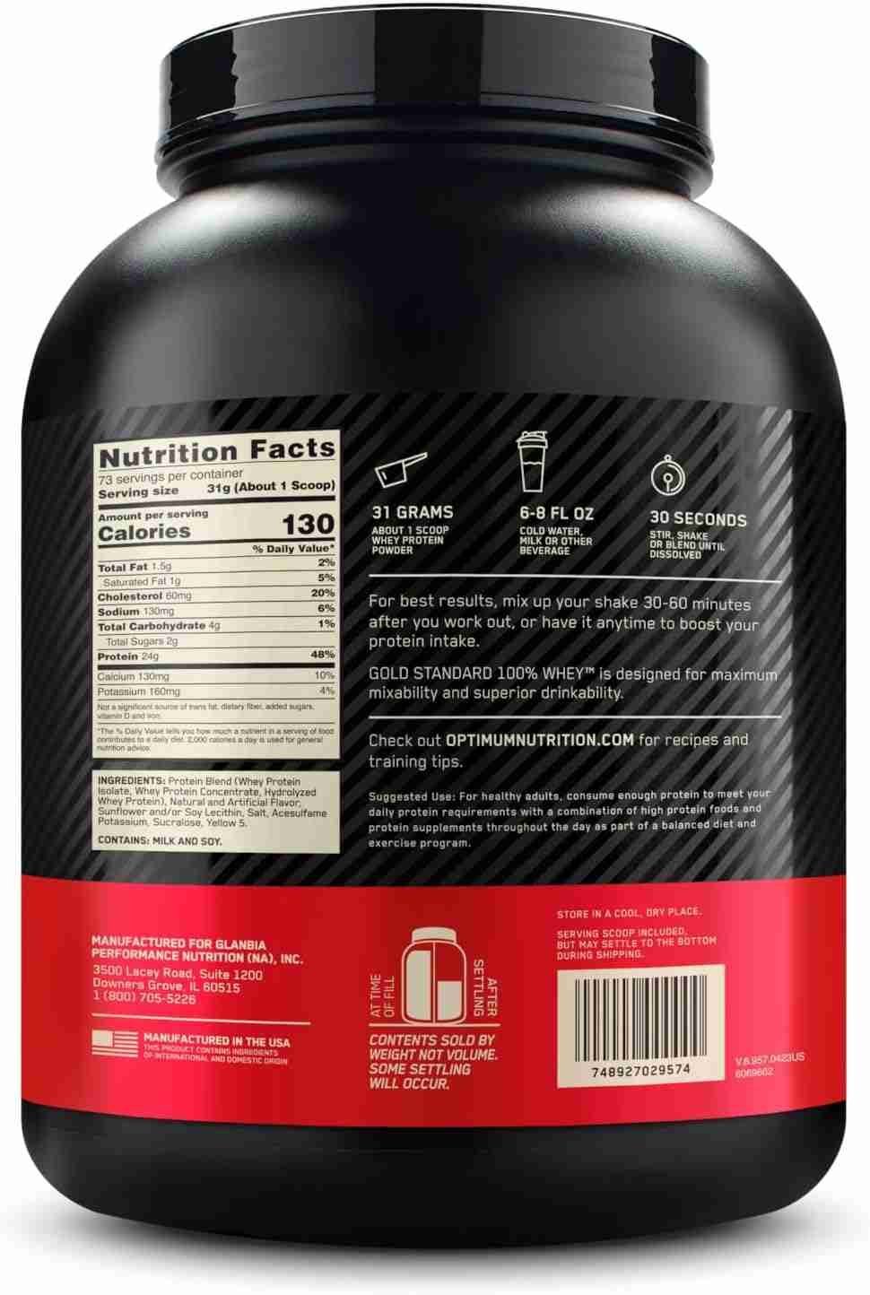 Whey protein isolate (WPI) is the primary ingredient with excess carbs and fat ‘isolated’ out for a total of 24 grams of protein. With a wide range of great-tasting flavors & easy mixing with only a glass and spoon, there’s no doubt ON Gold Standard Whey is the gold standard choice of protein powder
