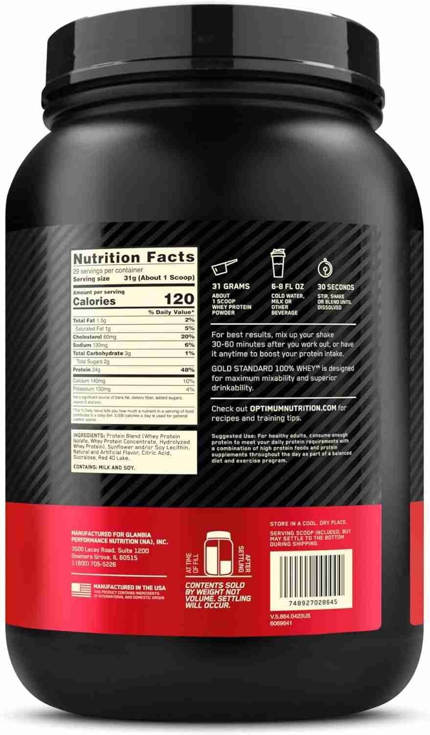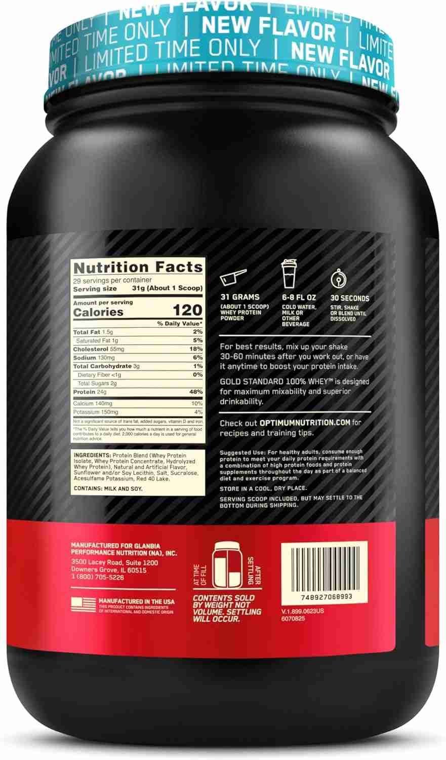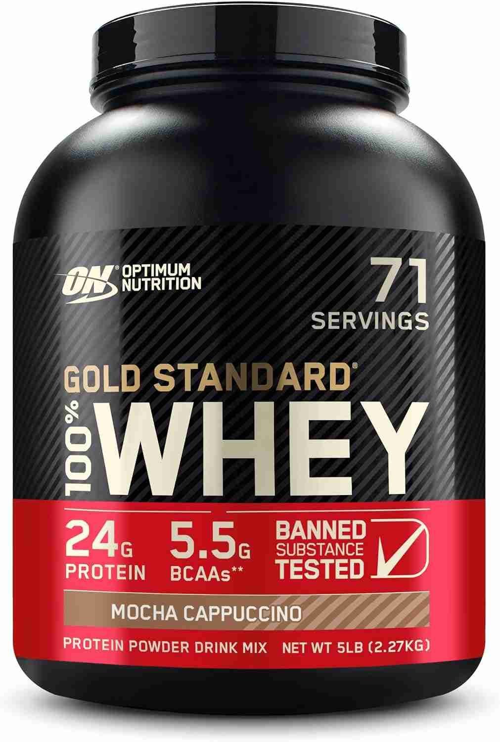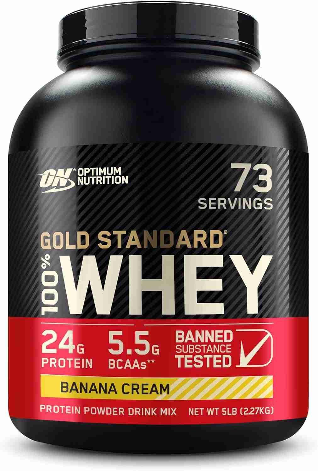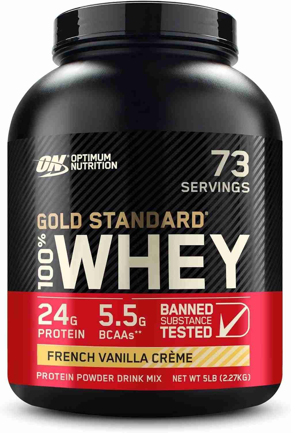 100% Whey Protein by Optimum Nutrition for optimal muscle building and recovery