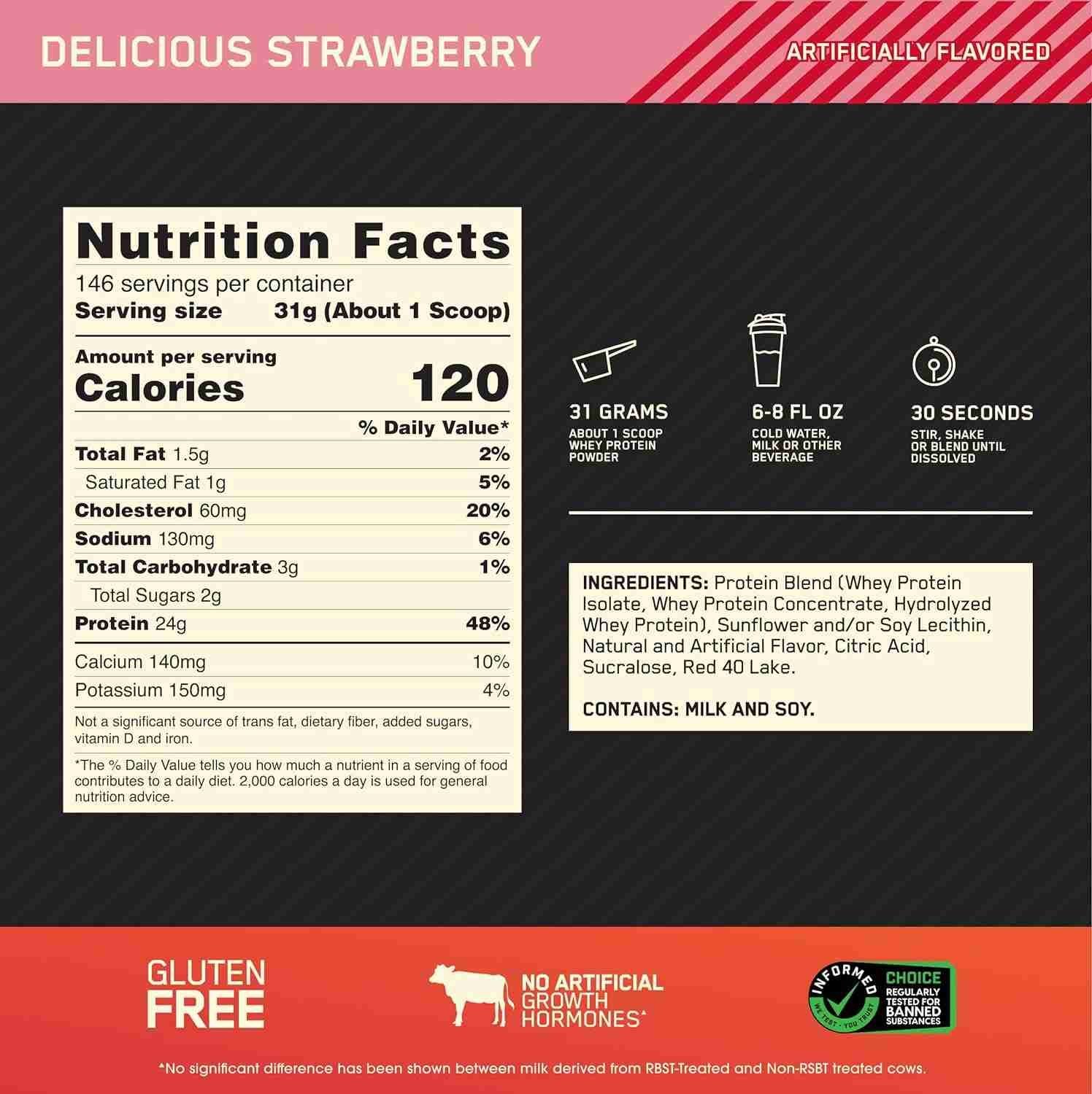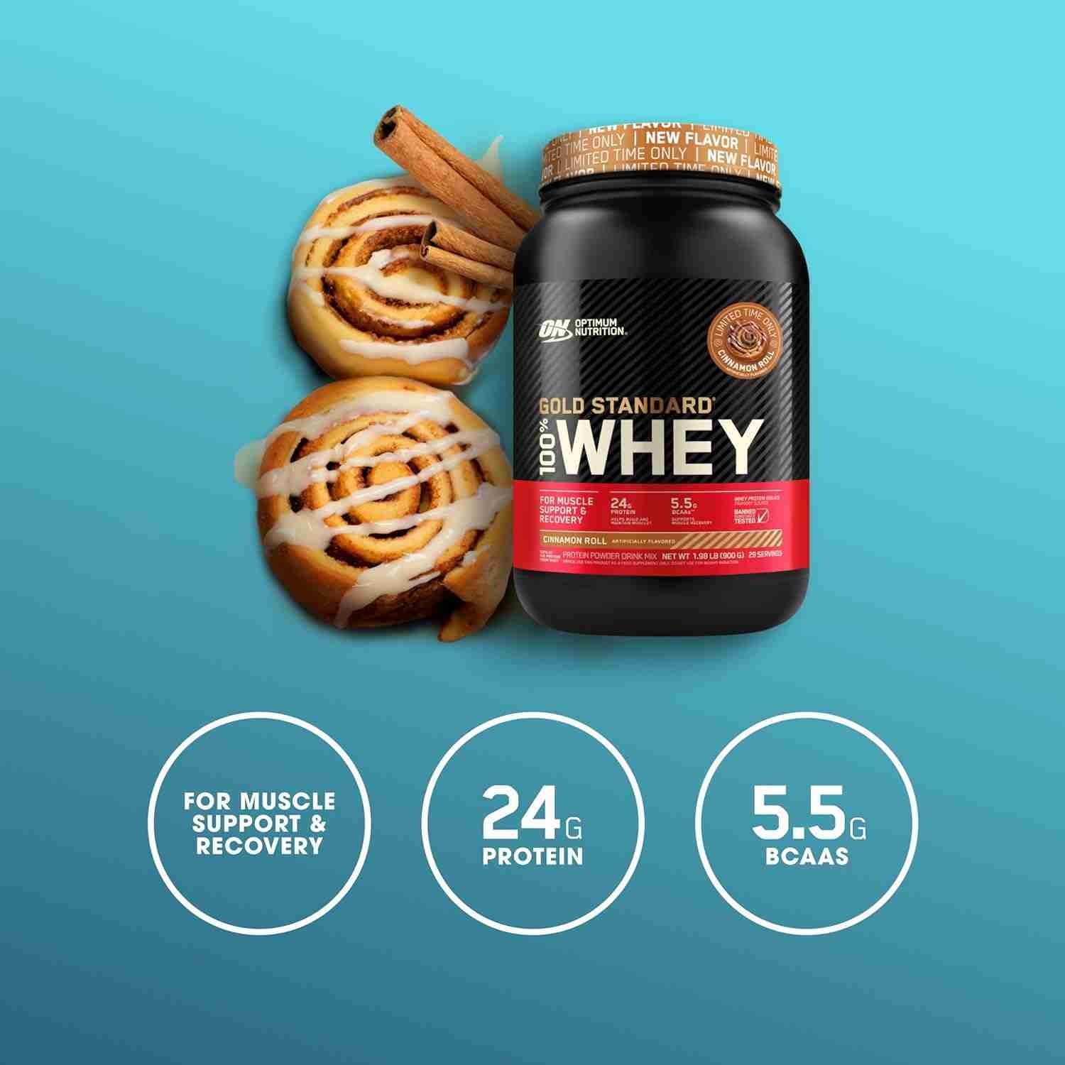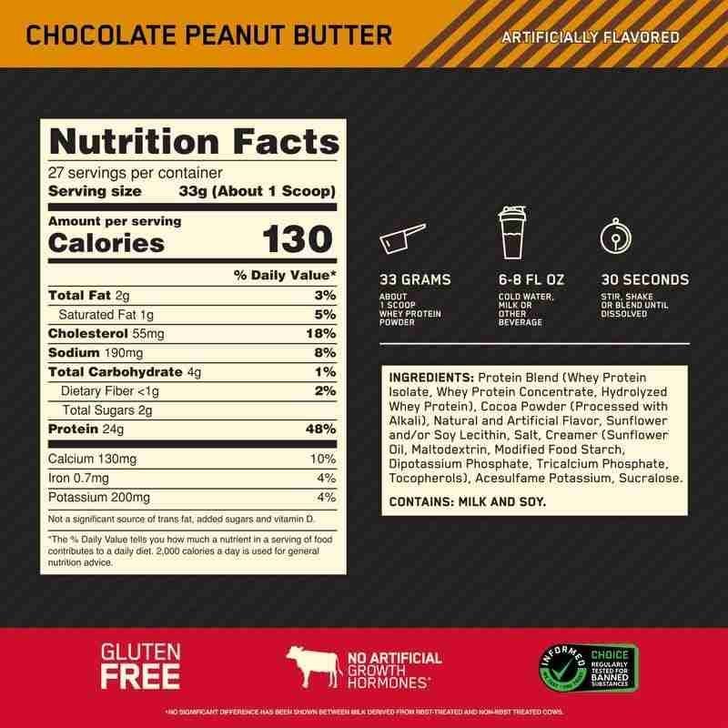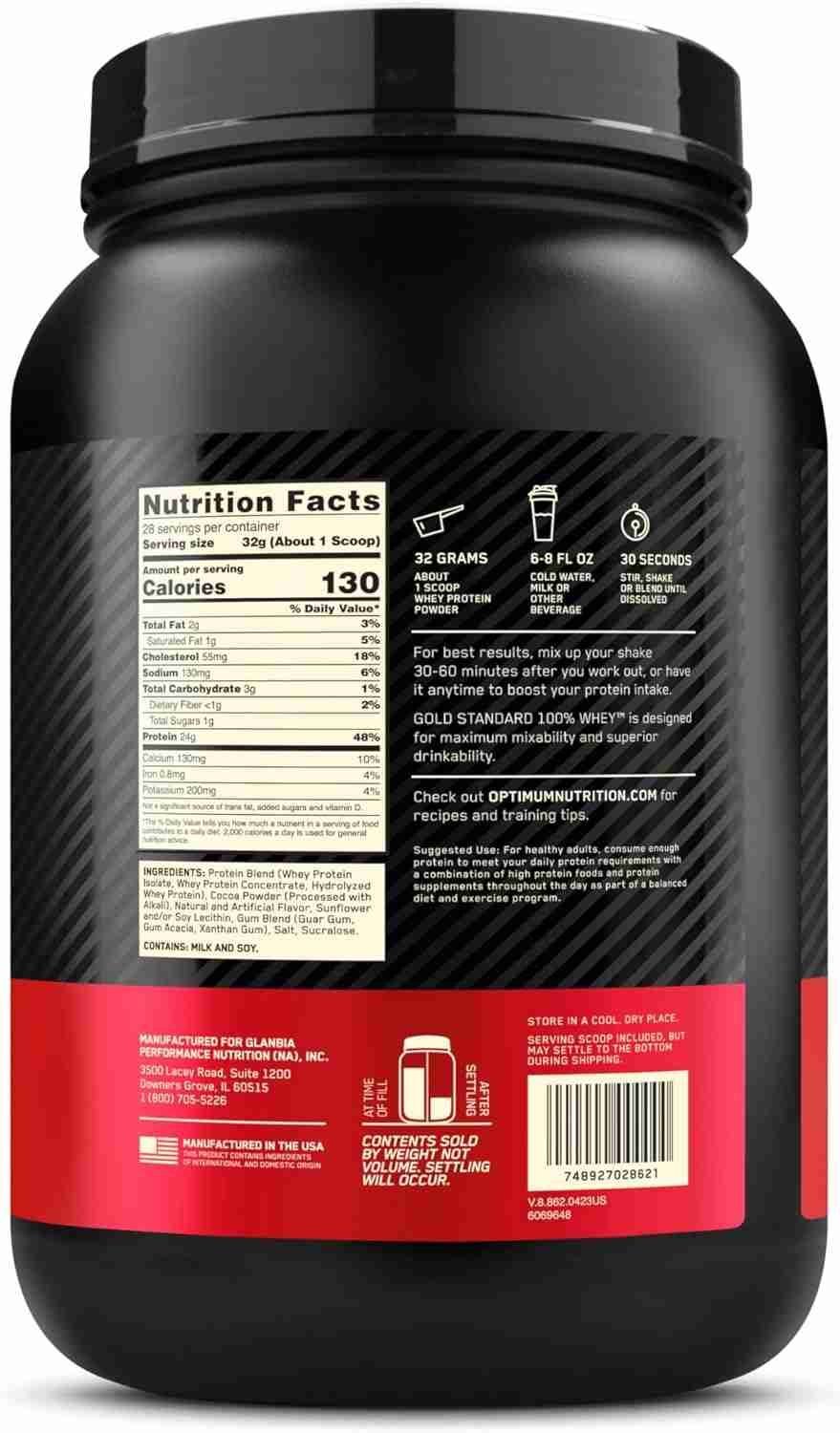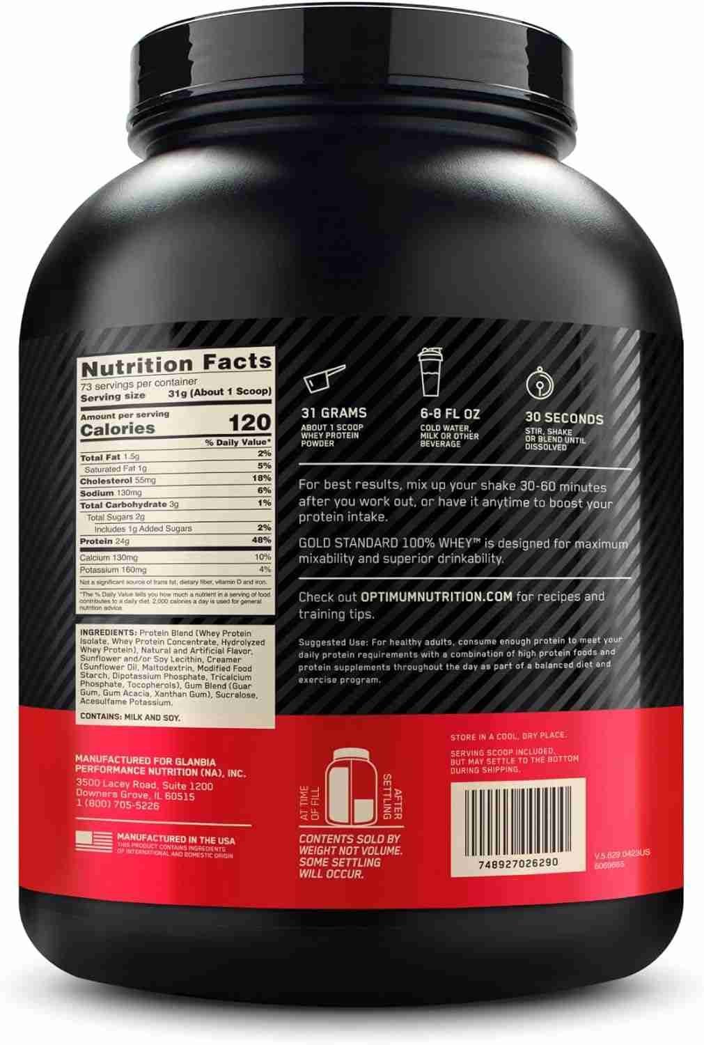 100% Whey Protein by Optimum Nutrition for optimal muscle building and recovery