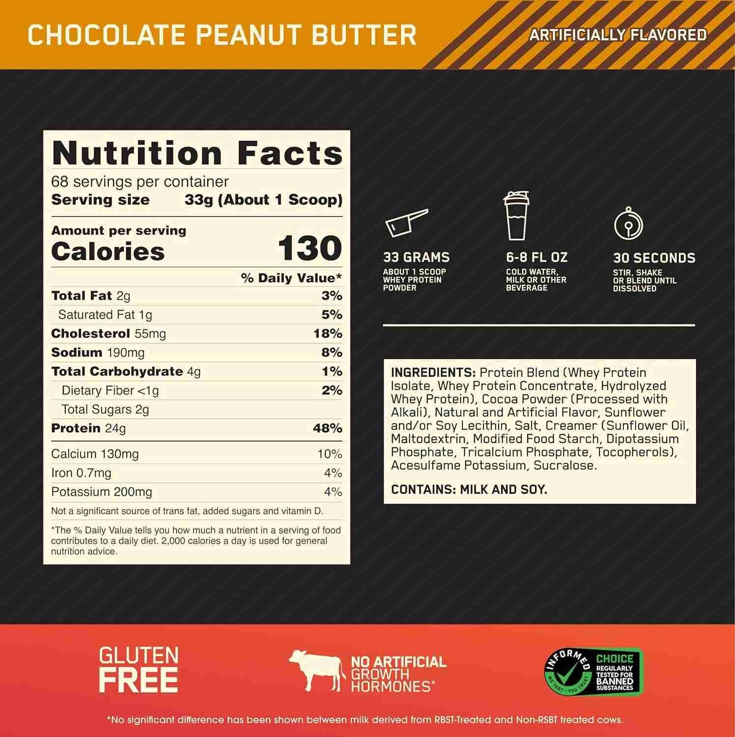 Optimum Nutrition Gold Standard 100% Whey Protein Powder, Double Rich Chocolate, 5 Pound (Packaging May Vary)