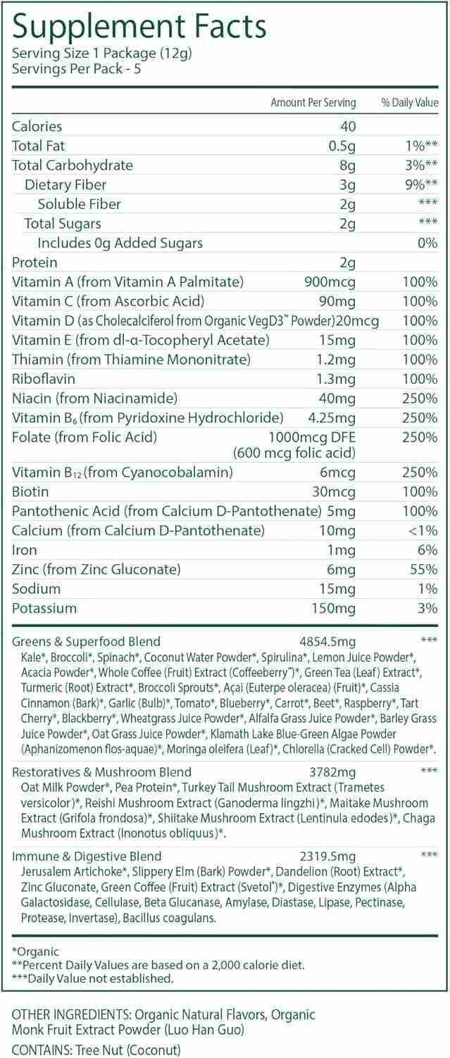 5 reviews for Suja Organic Greens Powder Probiotic Blend, Spirulina, Daily Superfood Drink or Smoothie Mix for Immune Support, Digestion, &