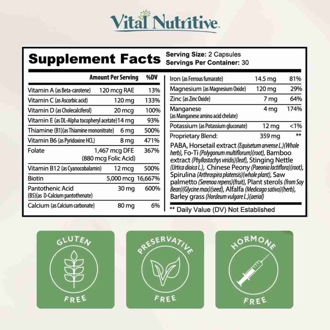 Transform your hair with Vital Hair Complex, a premium supplement for men and women of all hair types. Made without harmful additives, preservatives, or artificial colors, it delivers pure, high-quality ingredients for hair health. Packed with antioxidants, it supports skin renewal, helps reduce oxidative stress, and promotes a vibrant, youthful appearance.